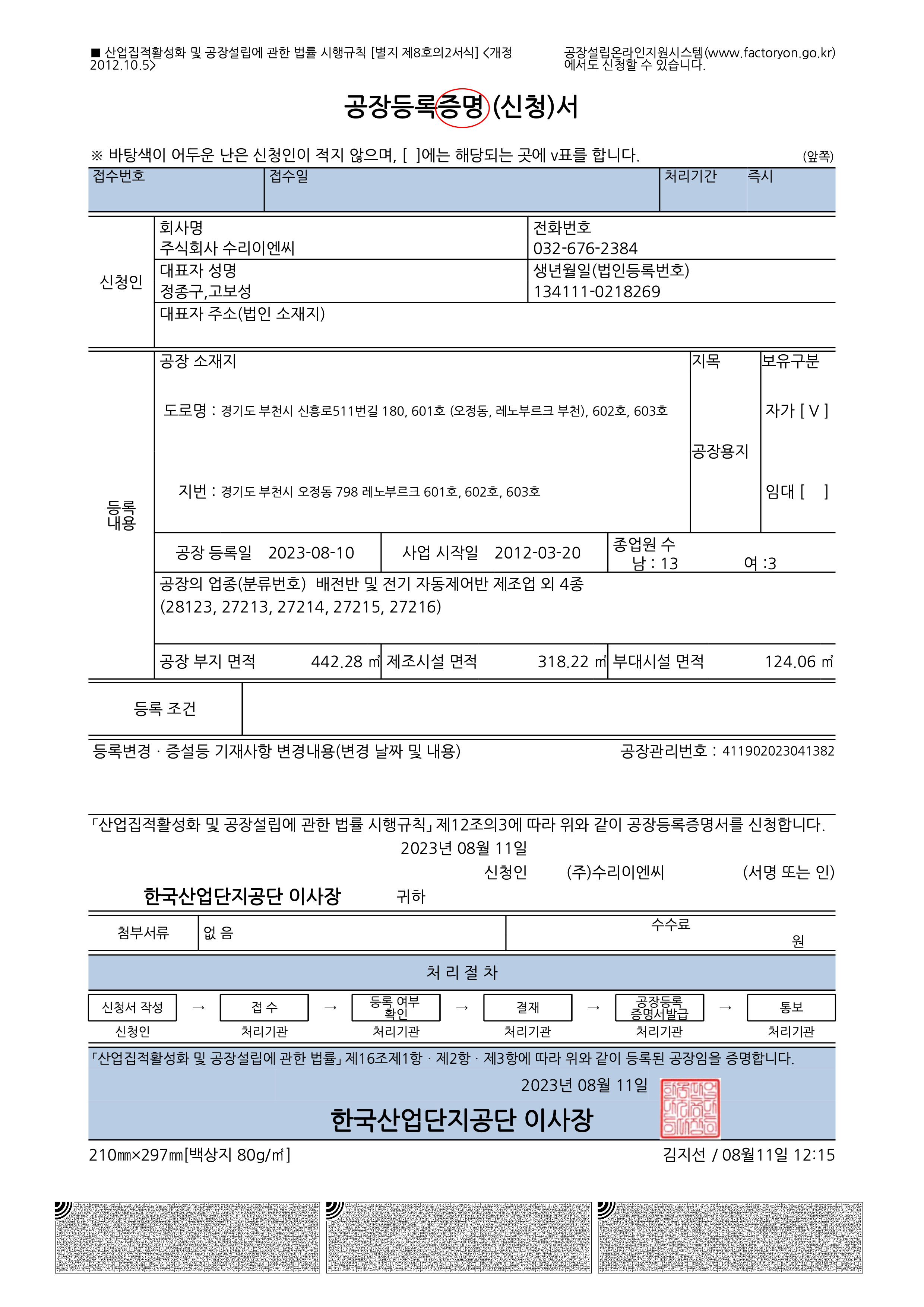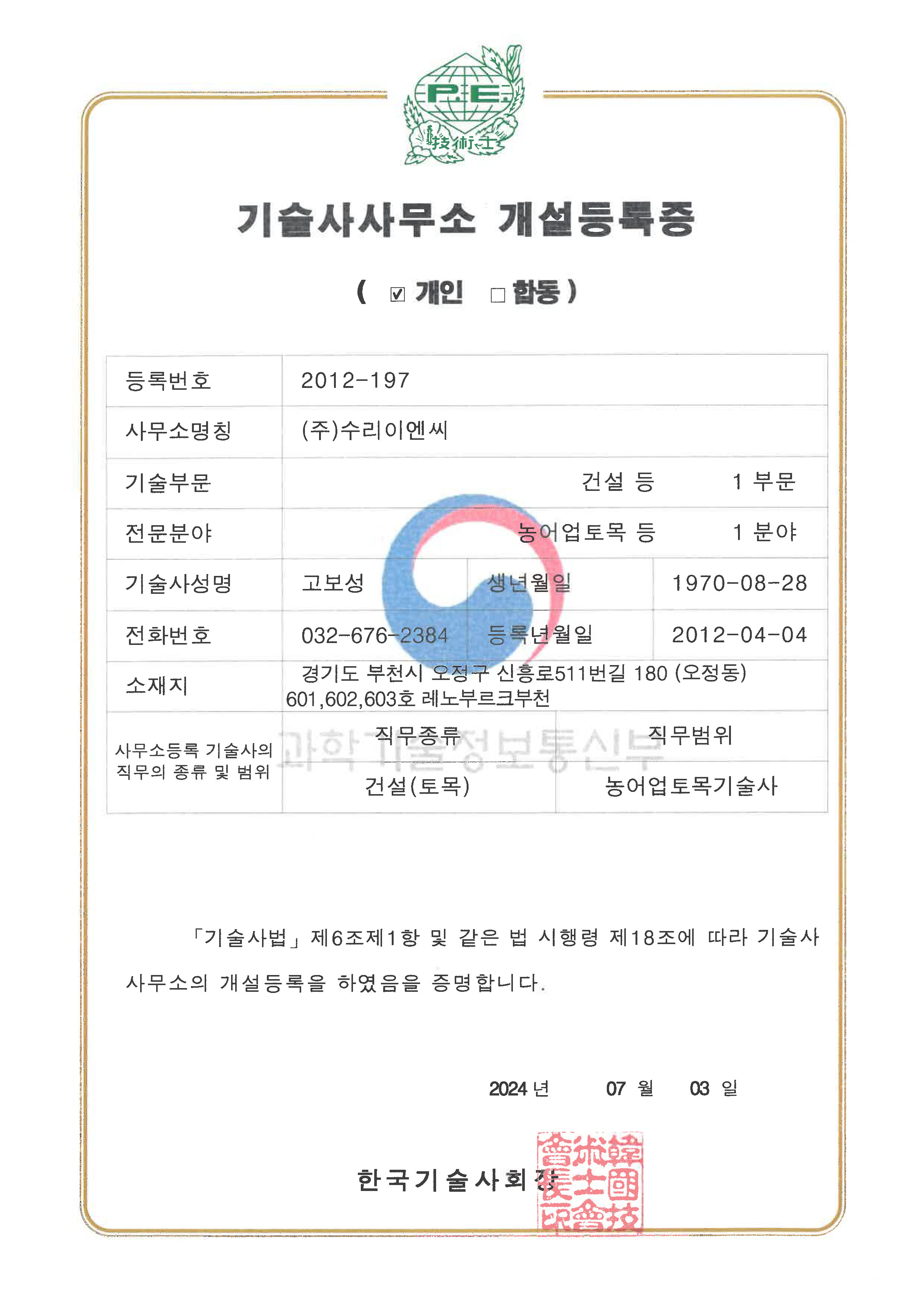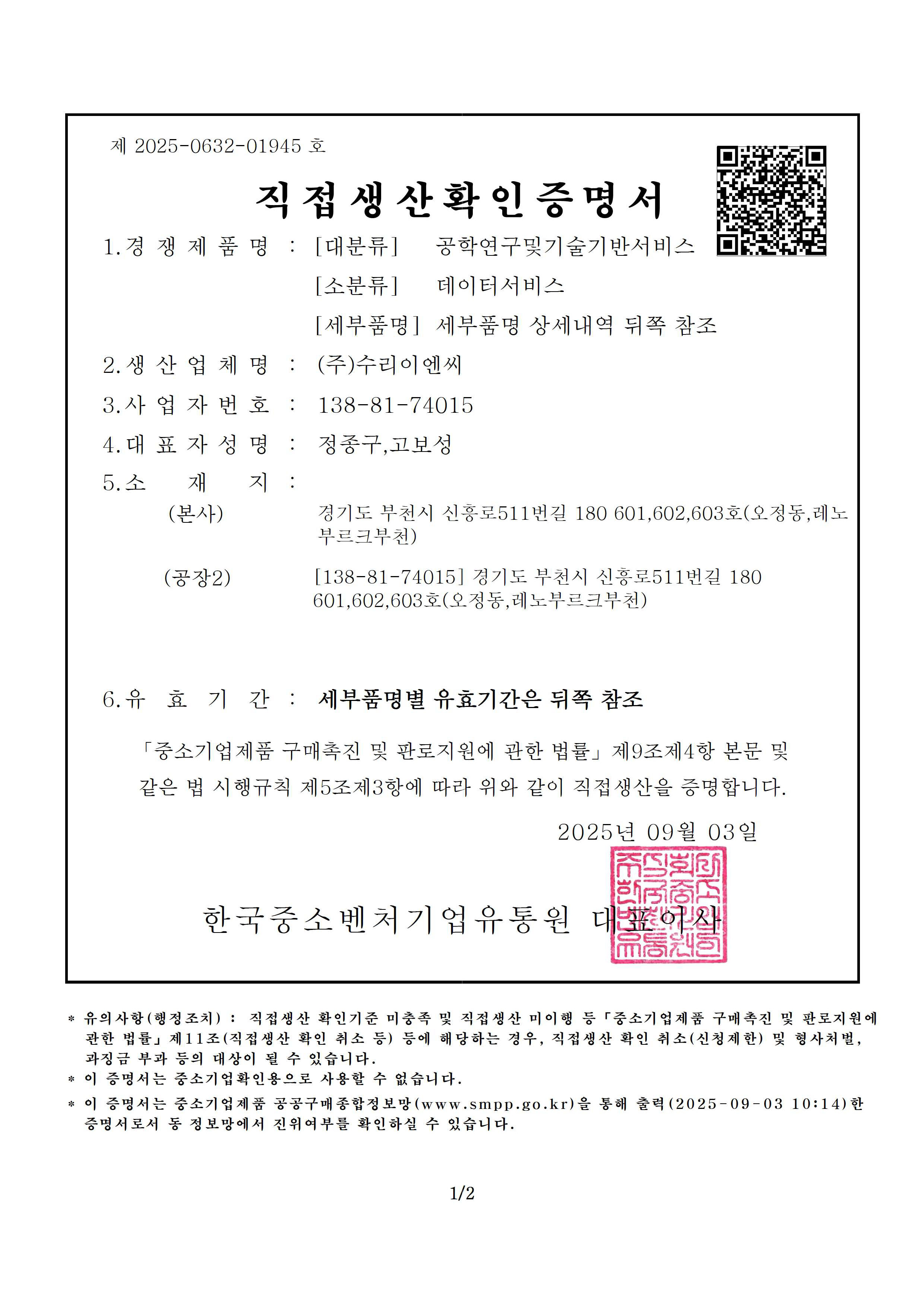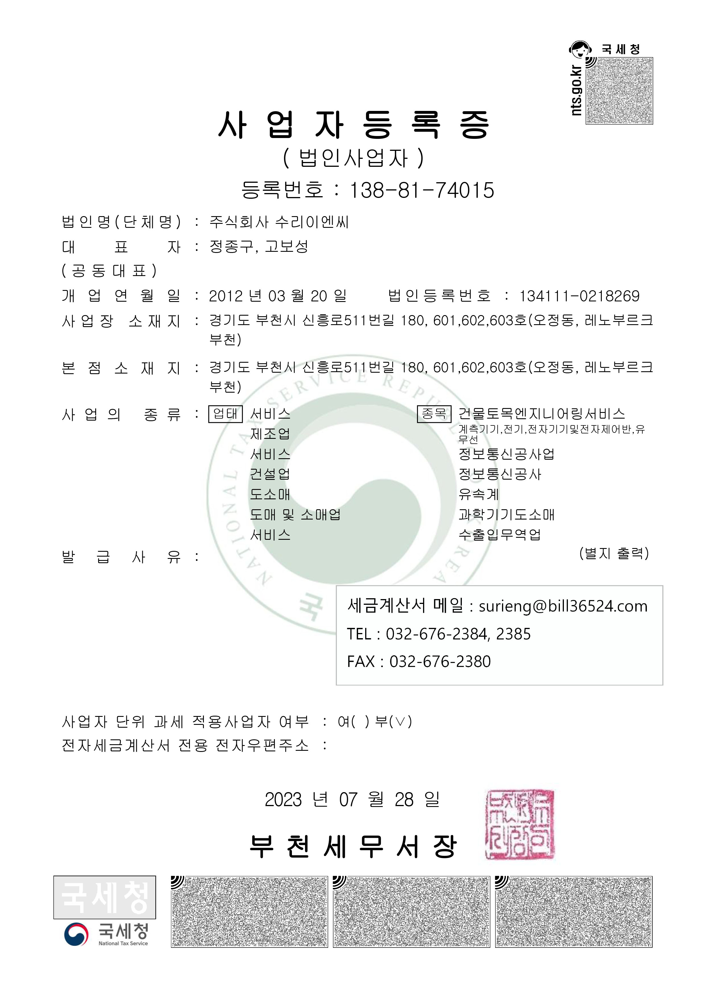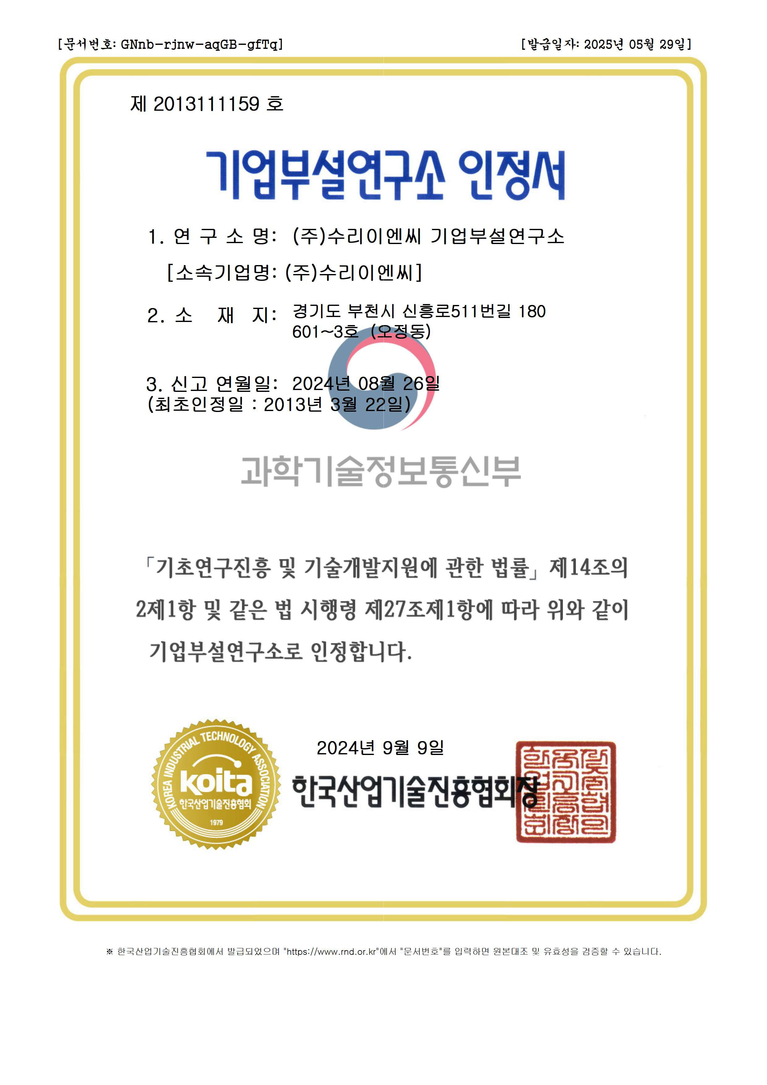 수리이엔씨가 고객에게 약속하는 최고의 신뢰입니다
