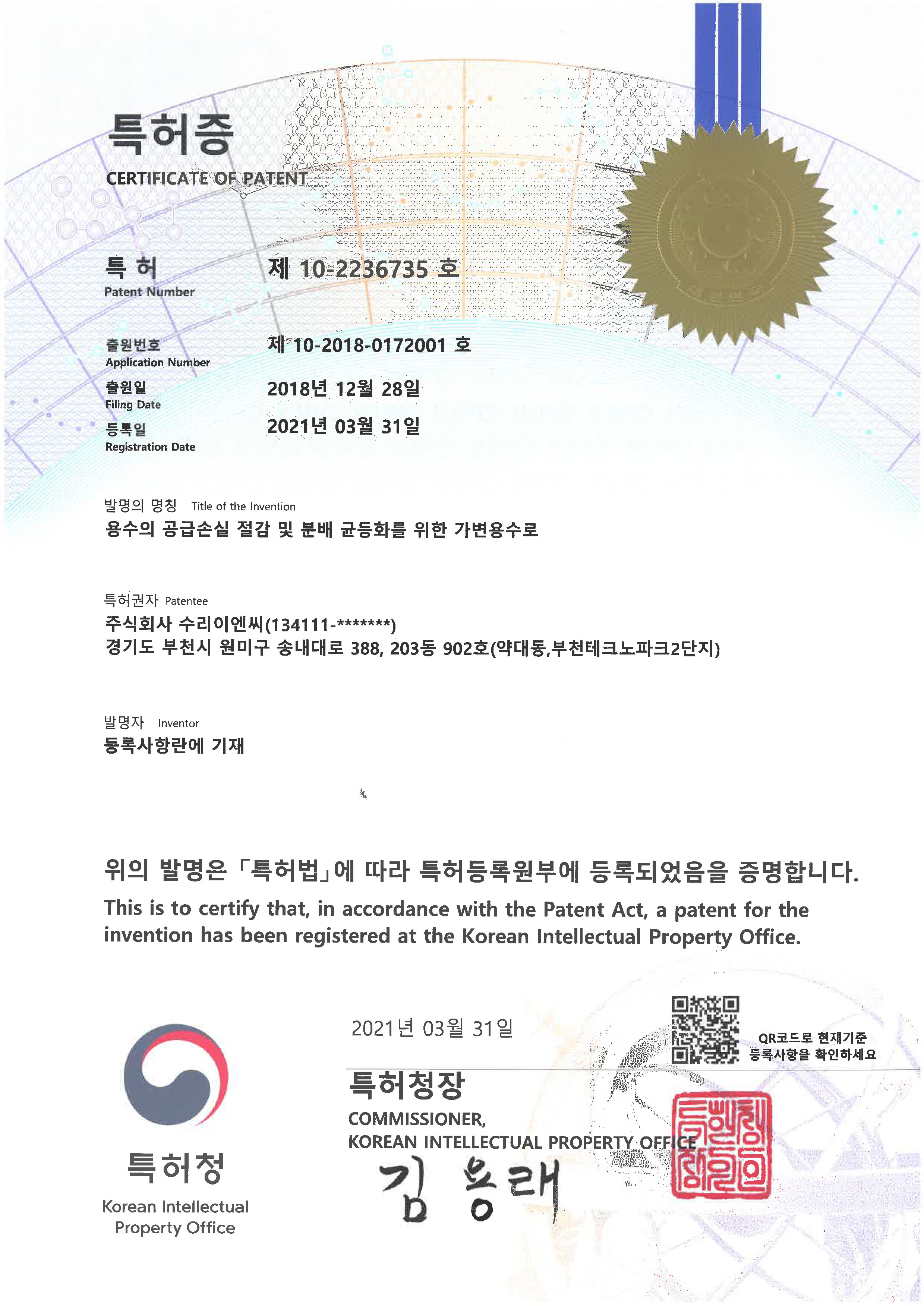 10-2236735 용수의 공급손실 절감 및 분배 균등화를 위한 가변용수로