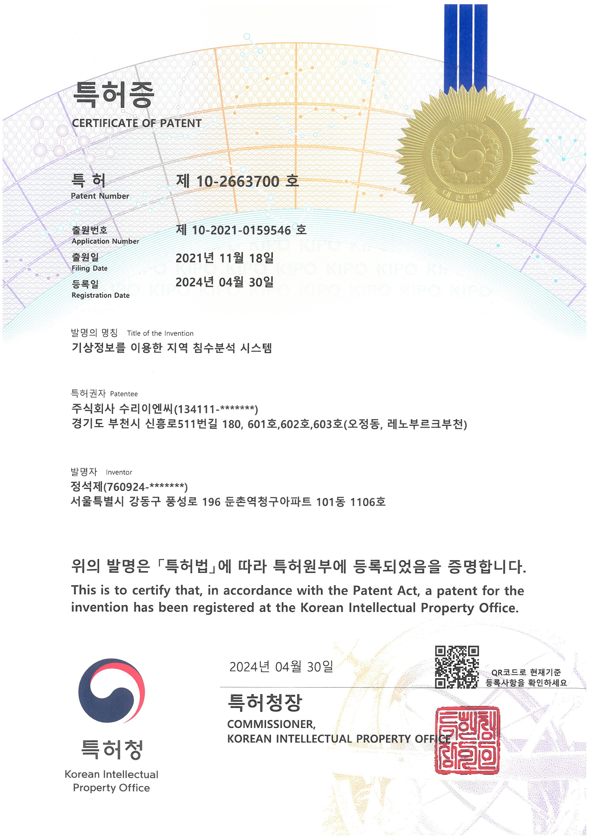 10-2716863 고정밀 항공라이다를 활용한 농경지 침수분석시스템