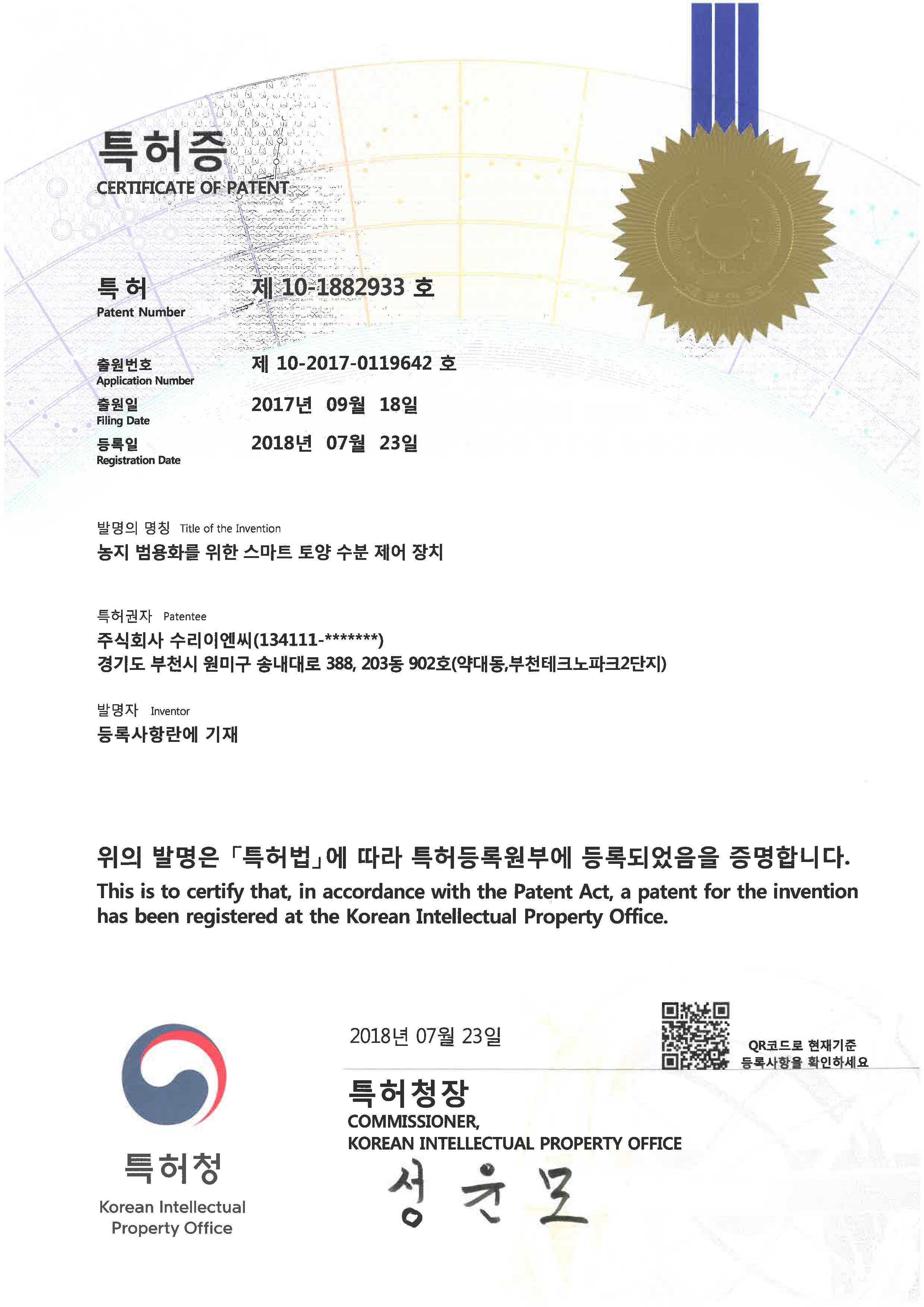10-1882933 농지 범용화를 위한 스마트 토양 수분 제어 장치