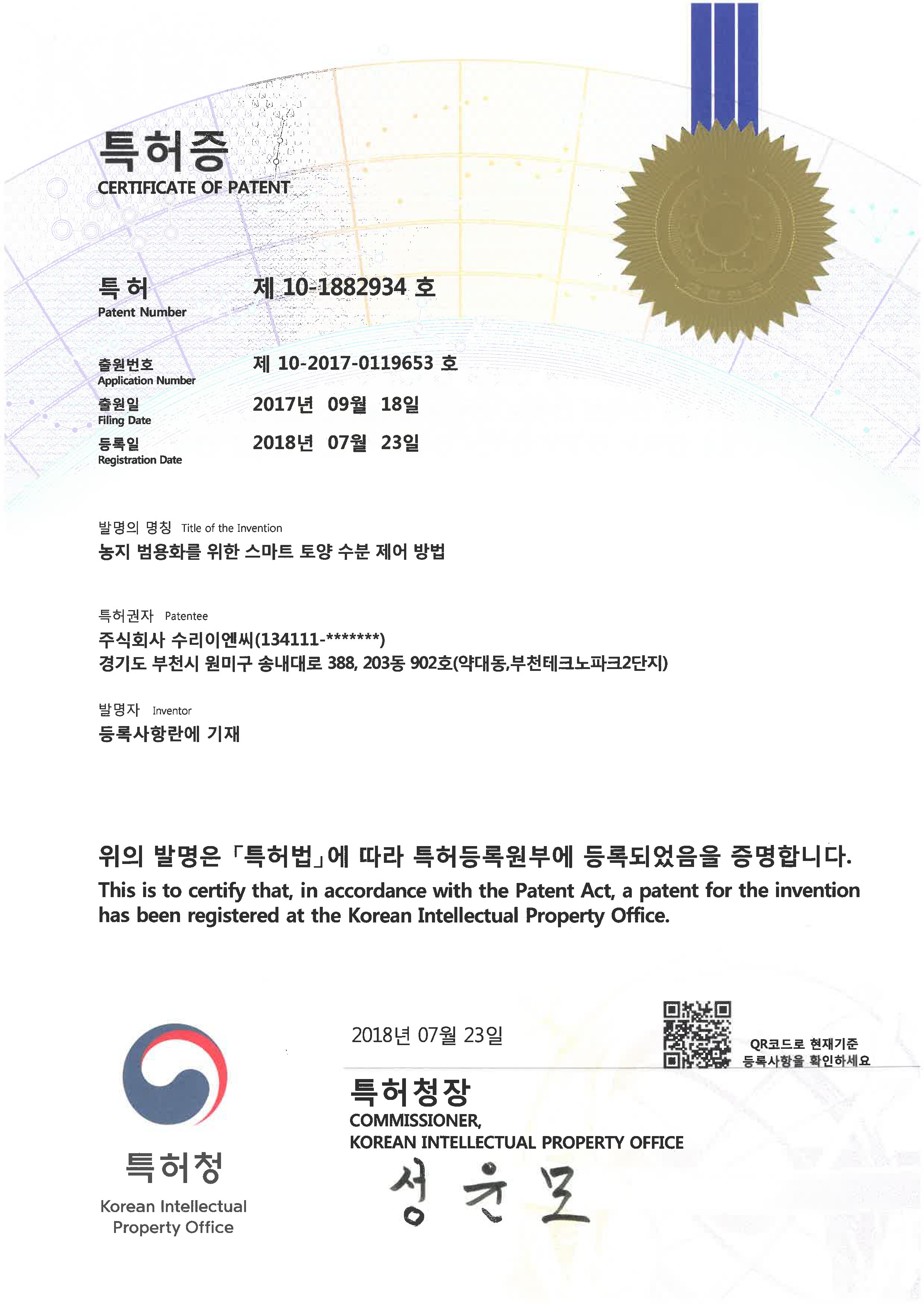 10-1882934 농지 범용화를 위한 스마트 토양 수분 제어 방법