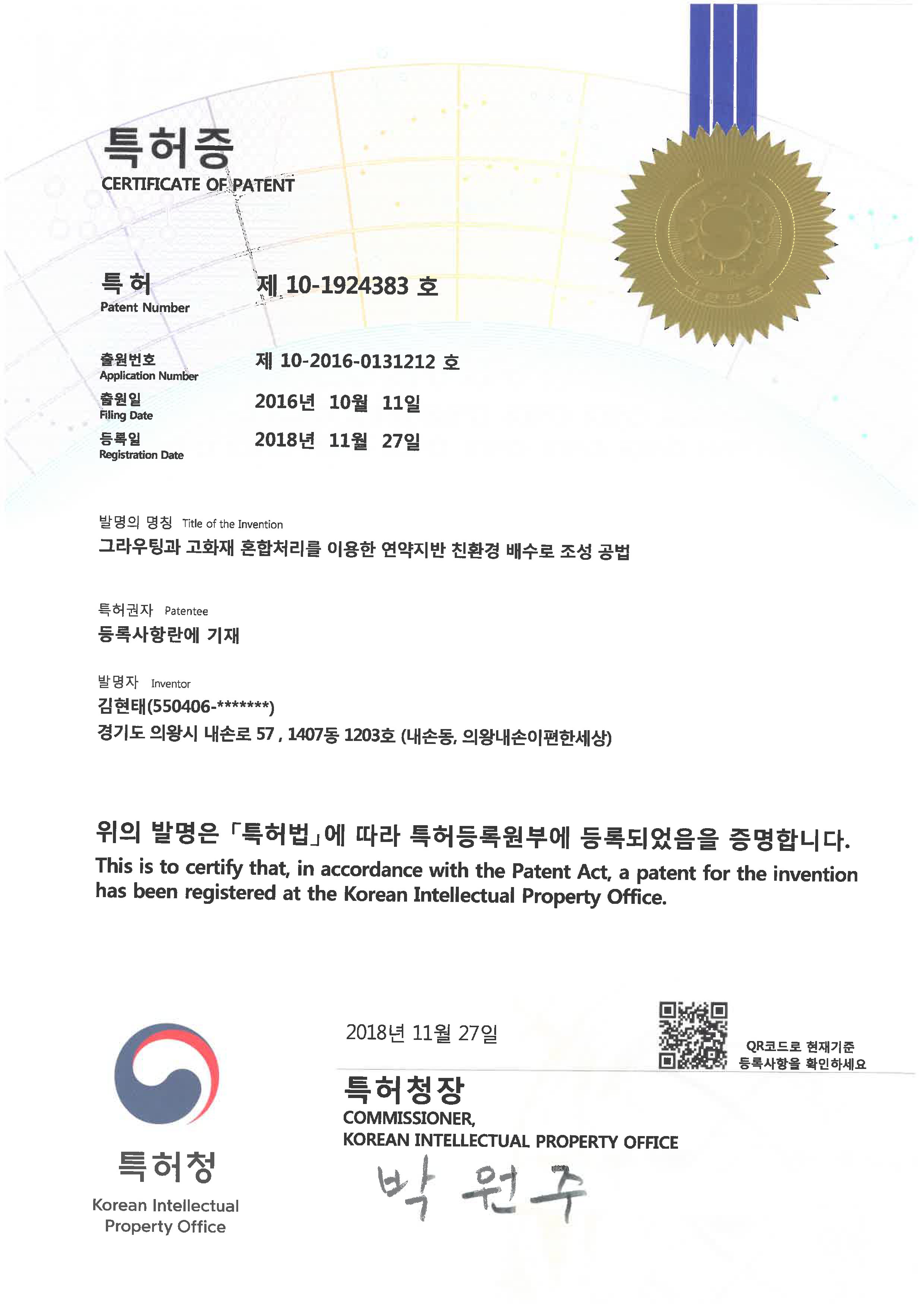 10-1924383 그라우팅과 고화재 혼합처리를 이용한 연약지반 친환경 배수로 조성 공법
