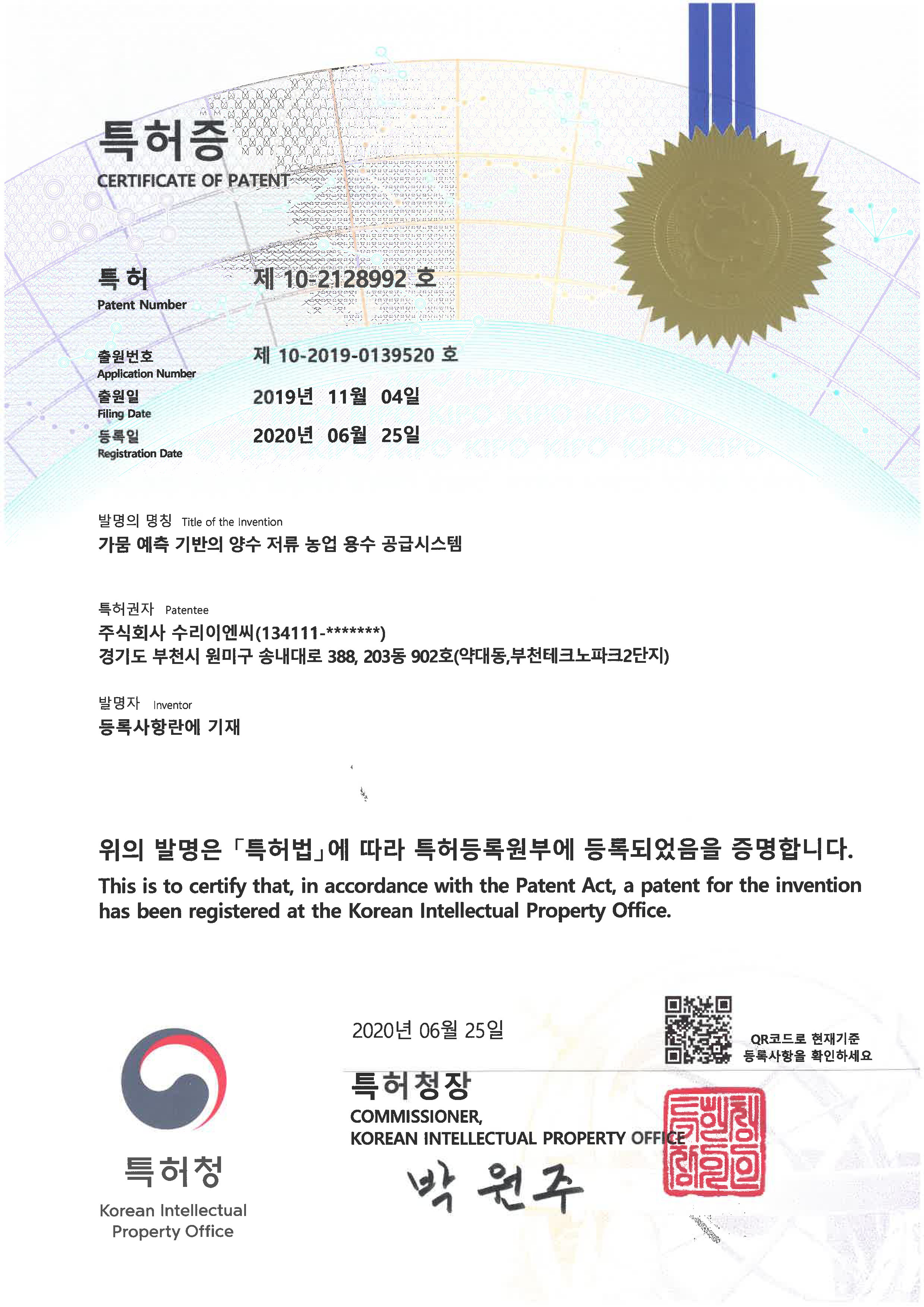 10-2128992 가뭄 예측 기반의 양수 저류 농업 용수 공급시스템