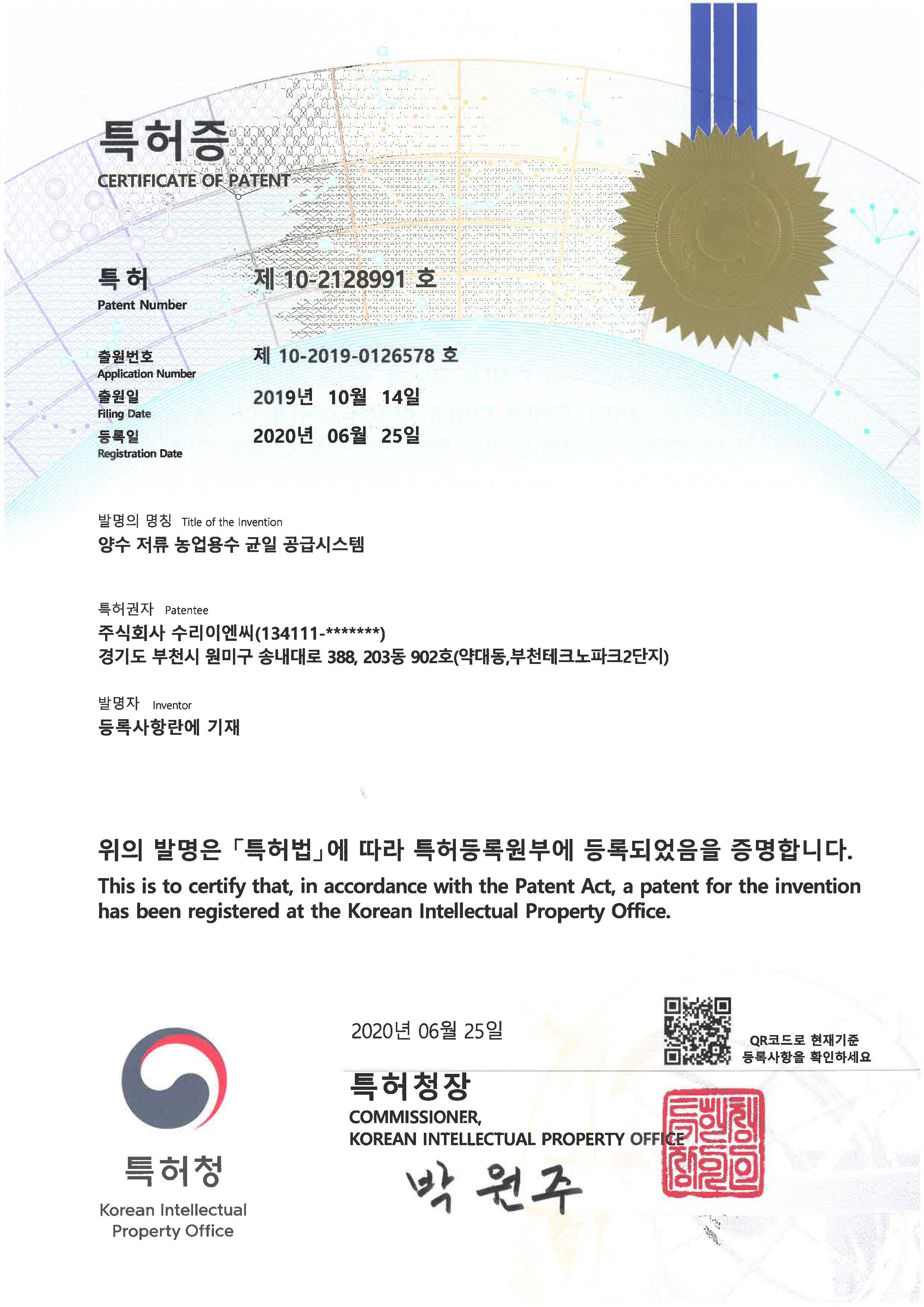 10-2128991 양수 저류 농업용수 균일 공급시스템